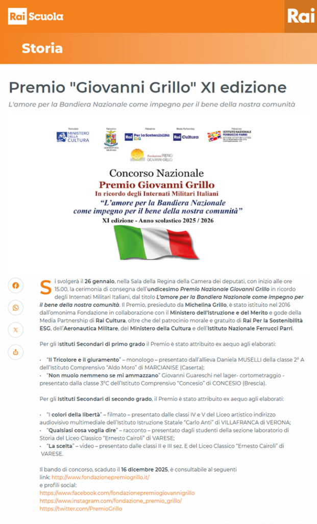 Fondazione Premio Giovanni Grillo Concorso rivolto alle scuole secondarie di primo e secondo grado d’Italia in collaborazione con il Ministero dell'Istruzione